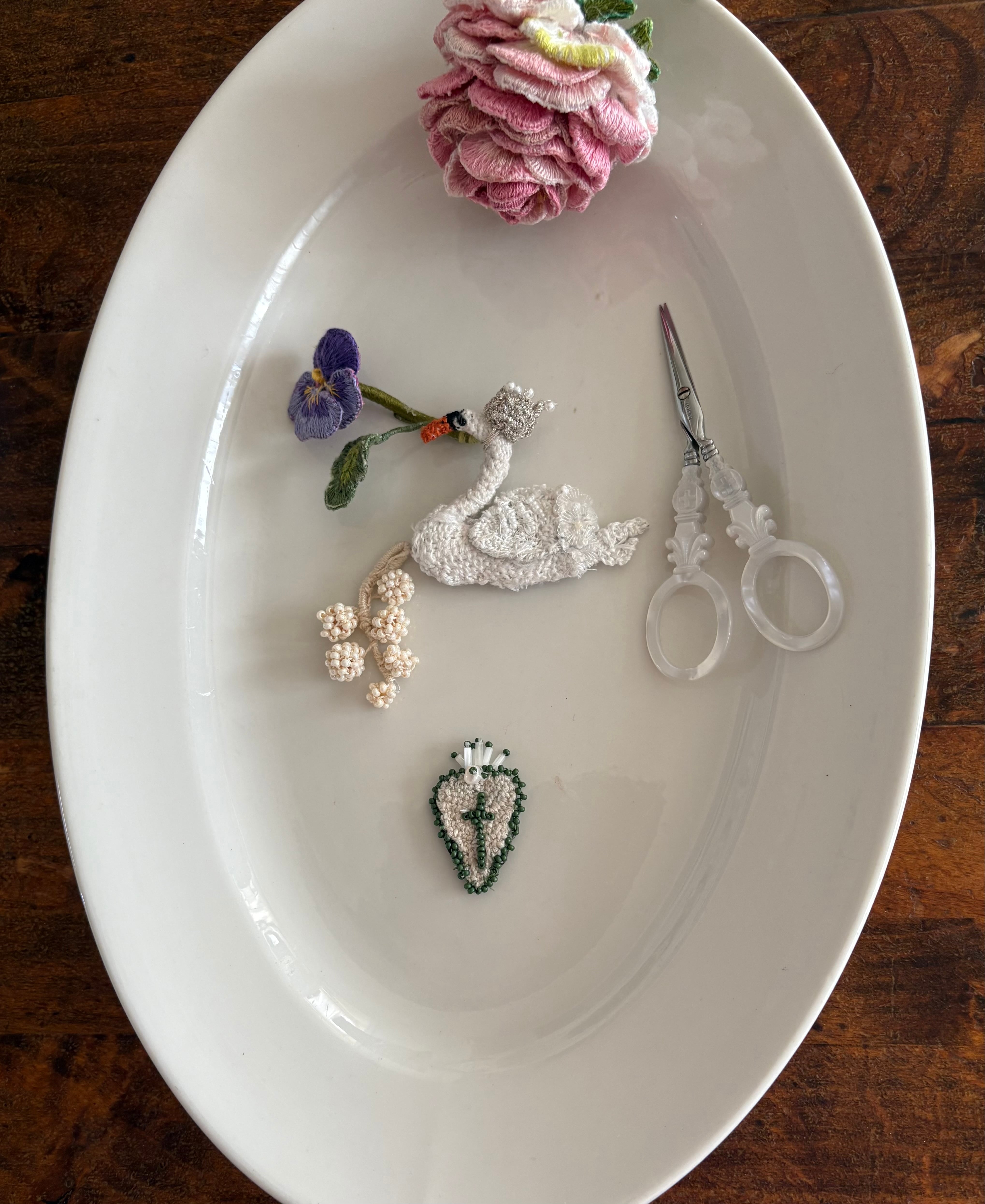 刺繡針で細かく製作しています。